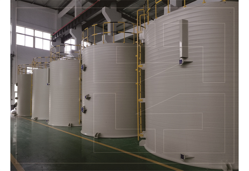 近幾年在得益于新能源行業的飛速發展,公司已有六條螺旋基礎生產線,產品主要輻射中部地區、西部地區,年產能可達3000多臺PPH、HDPE罐,200多套尾氣處理塔,出貨量處于同行業中比較強的地位,公司儲罐采用一次性成型工藝制作,單體模具尺寸可達4200*9500mm,體積達130m³,配置下人孔自動焊接機,設備使用安全,無滲漏風險,主要應用液鎳,液鈷,混合鹽液、液堿、氨水、硫酸等介質的存放。